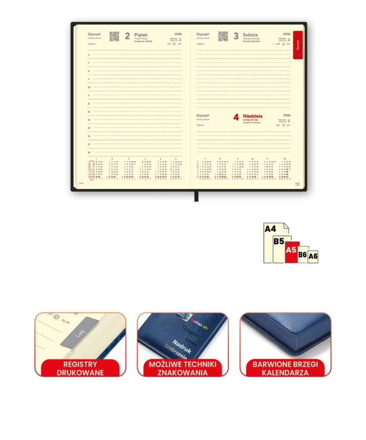 Kalendarz książkowy A5 SA - 1677 - Rozkład Dzienny