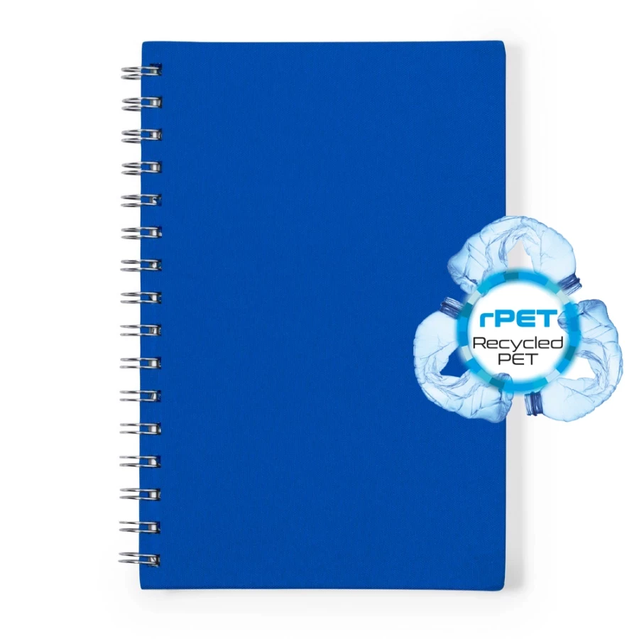 Notatnik A5 (100 kartek w linie), twarda okładka wykonana z RPET, kartki w 100% z recyklingu z mikroperforacją, spiralne bindowanie